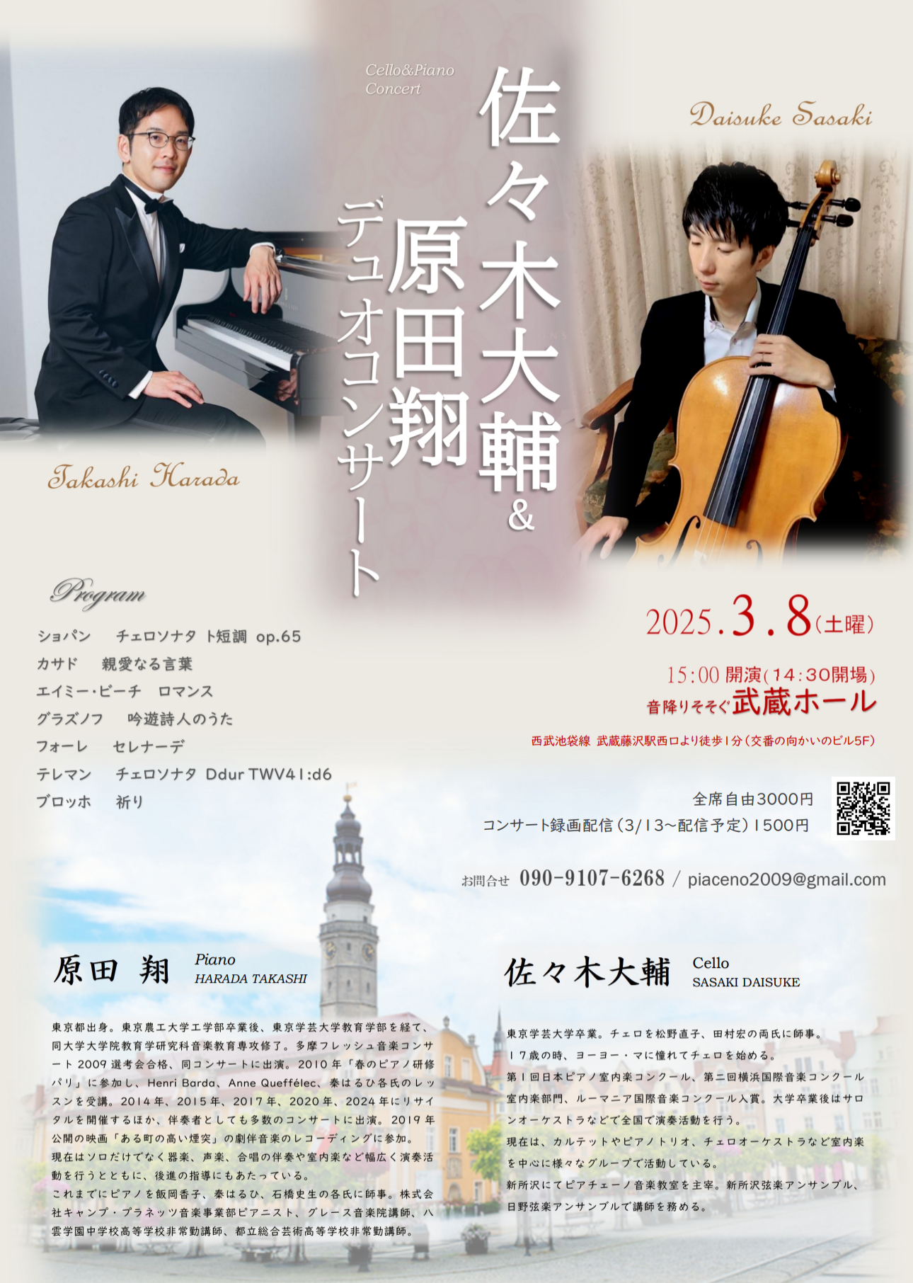 2024.12.12 2025.3.8に武蔵ホールにて、「佐々木大輔&原田翔デュオコンサート」を開催いたします。 前半は素敵な小品たちを、後半はショパンのチェロソナタをお届けします。 ピアニストは原田翔さんです。 是非、…